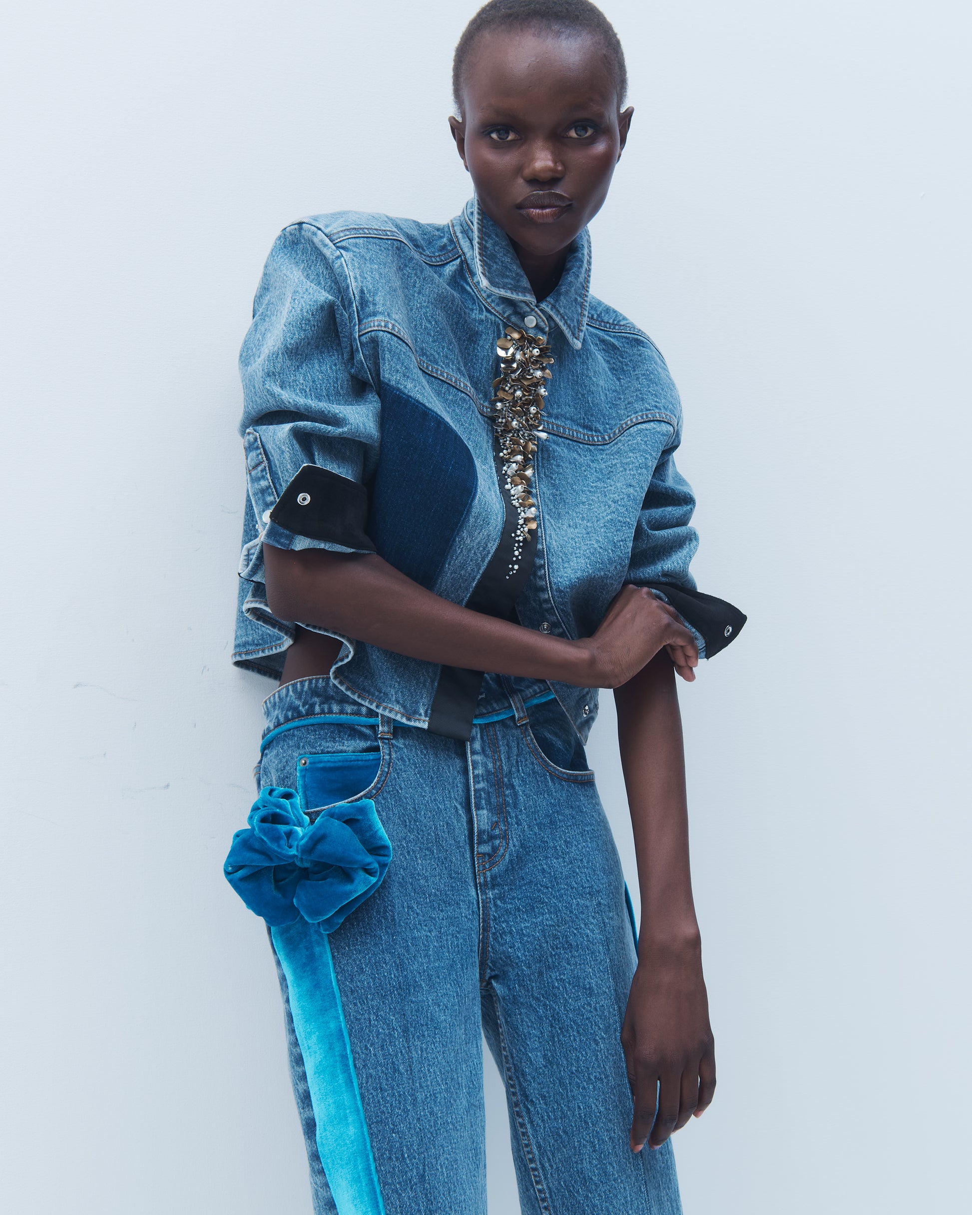 Denim Jacket with Sequin Embroidery.