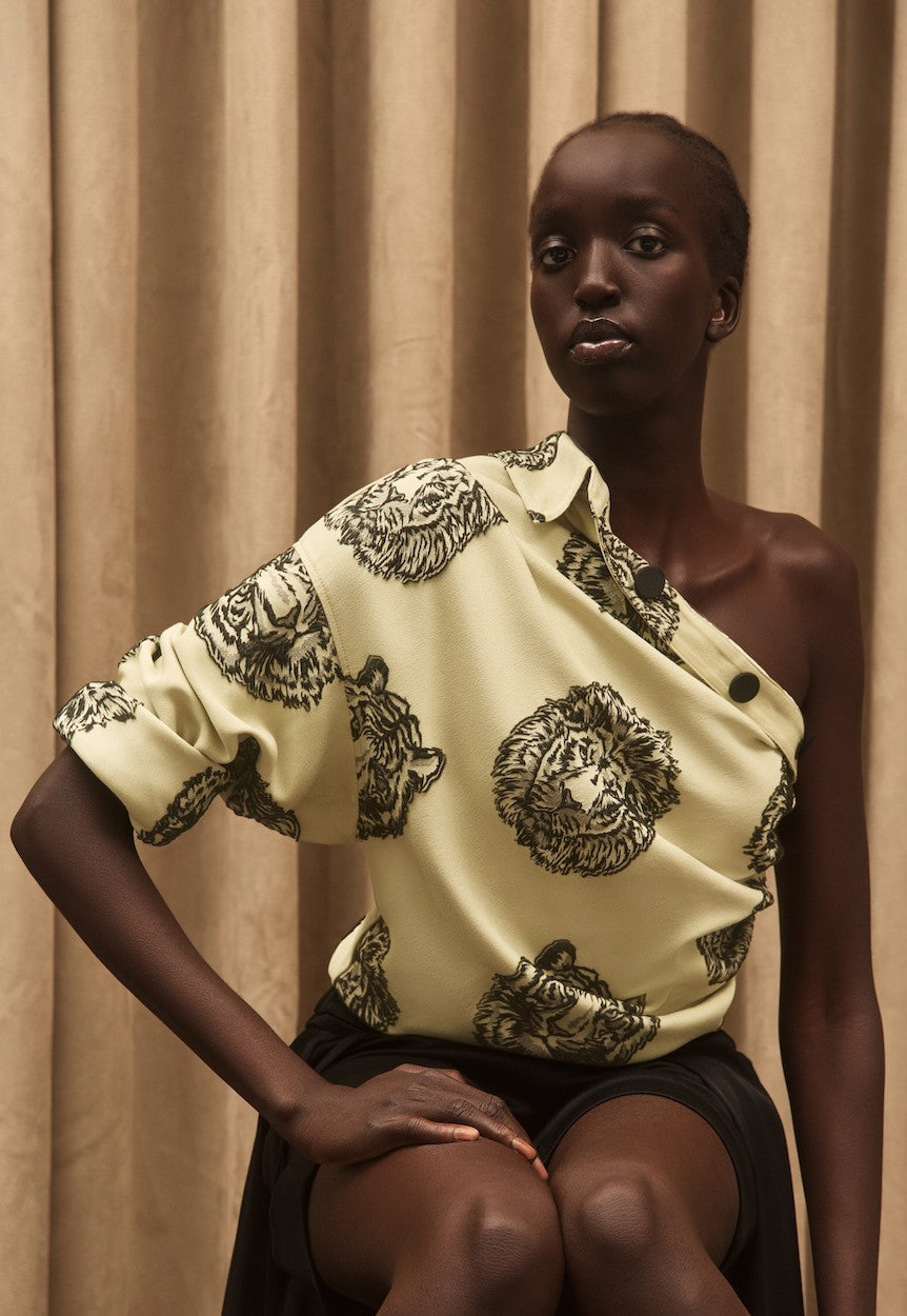 Asymmetric Shirt with Rolled Sleeve.