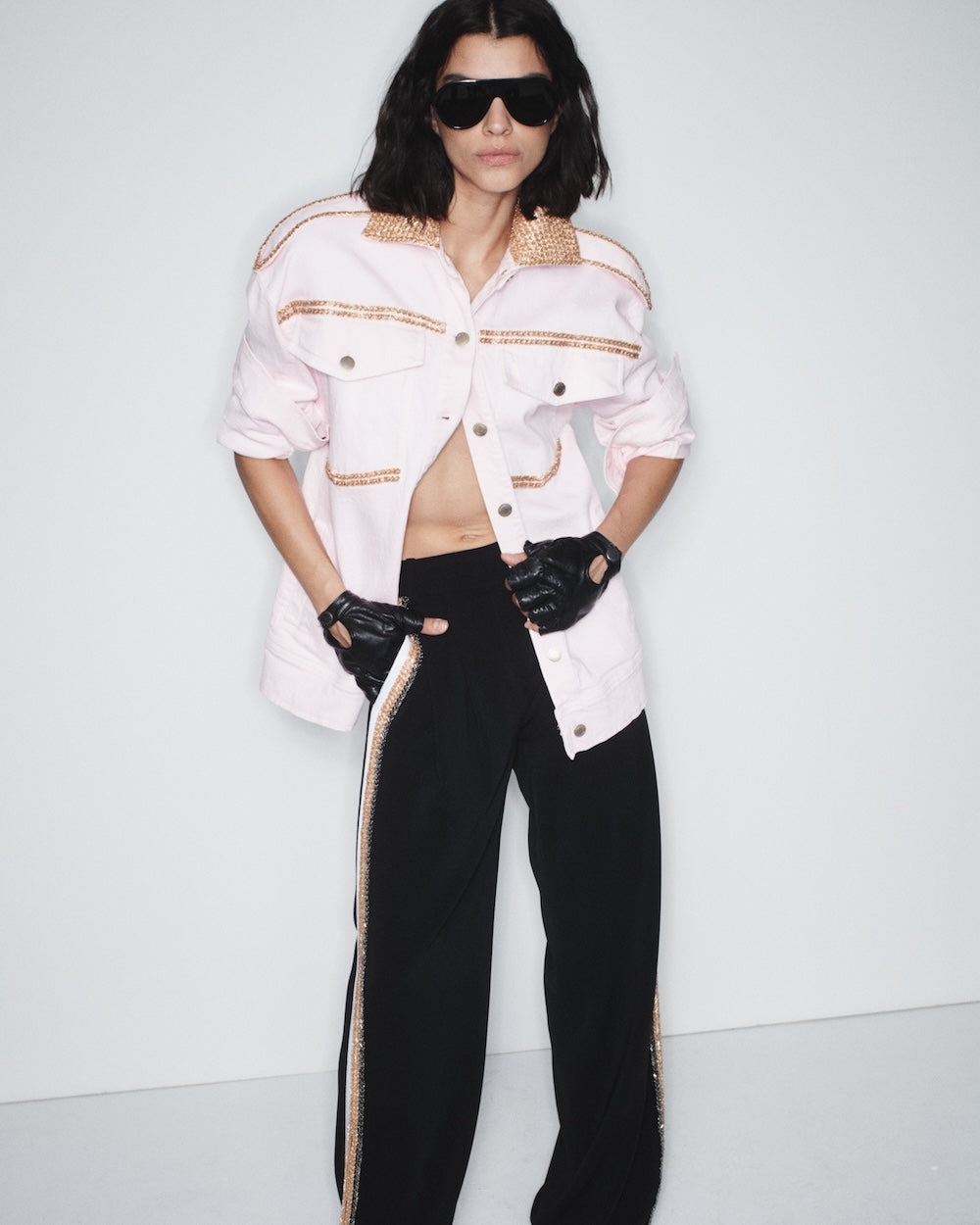 Blush Denim Jacket with Beaded Applications.