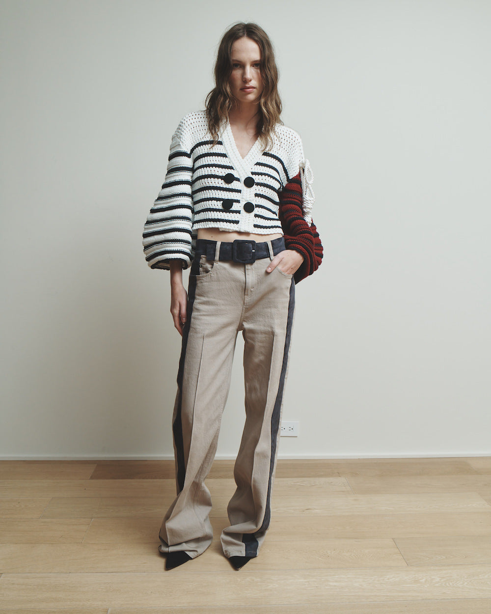 Beige Wash Denim Jean with Ultra Suede Dark Taupe Belt.